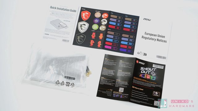 1 份歐盟規管文件、1 組延伸式 Wi-Fi 7 接收天線、1 份 MSI SHOUT OUT 計劃介紹等等。