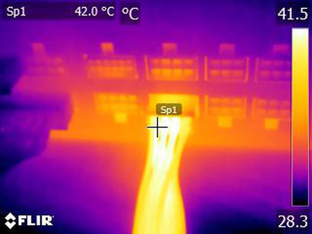 ▼執行FURMARK 30分鐘後顯示卡端插頭的紅外線熱影像圖(附註:安裝位置環境溫度會影