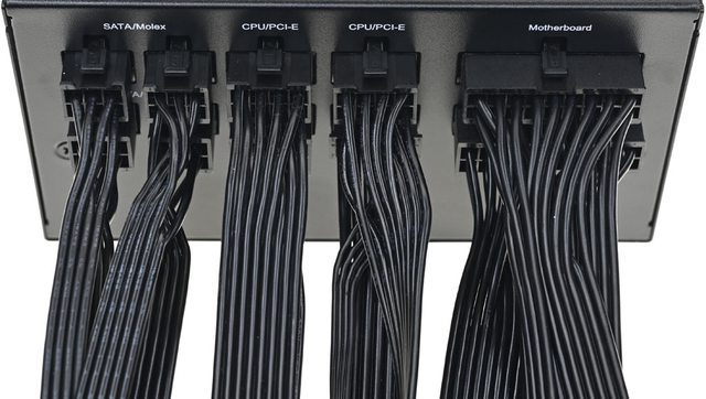 ▼3條SATA黑色帶狀模組化線路,提供7個直角SATA接頭及3個直式SATA接頭,其中一條配