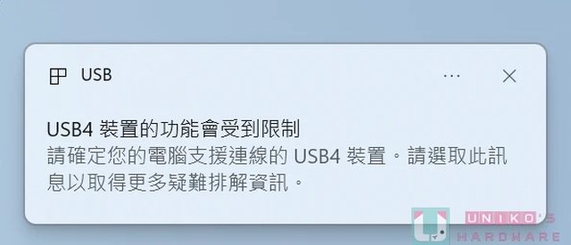 制器據說在連接非 TB / USB4 裝置時,USB 最高只能認到 10 Gbps,而 USB4 ASMEDIA ASM