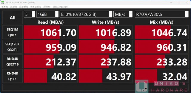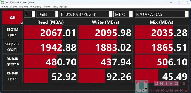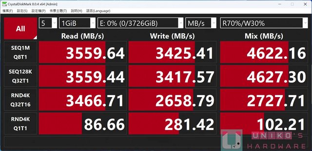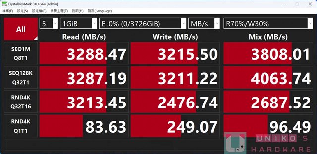 MB/s、WRITE 3227 MB/s 的成績,基本上約等同頂級 PCI-E 3.0 X4 NVMe SSD 直接插在主