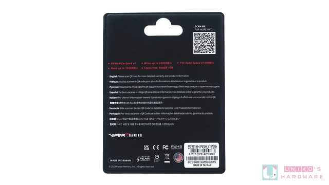 料顯示讀取達 7400 MB/s 的 PCI-E 4.0 X4 NVMe SSD - VP4300 LITE 4TB PCI-E 4.0 X4