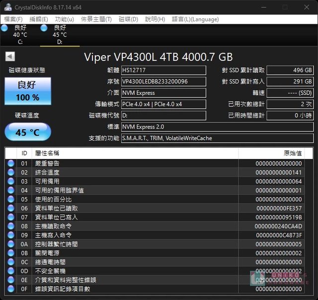 VP4300 LITE 4TB PCI-E 4.0 X4 NVMe SSD 加上 ASMEDIA AT2092 工程版的 ASMEDIA ASM24