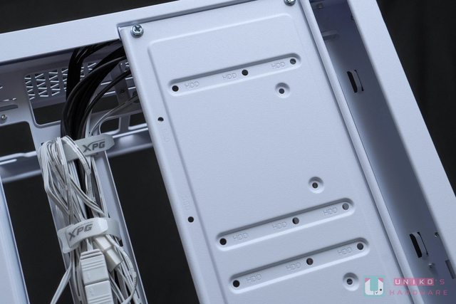 主機板安裝位置上方和側邊都留有大量線材走位槽空間,也有保留大量束帶固定用槽位方便