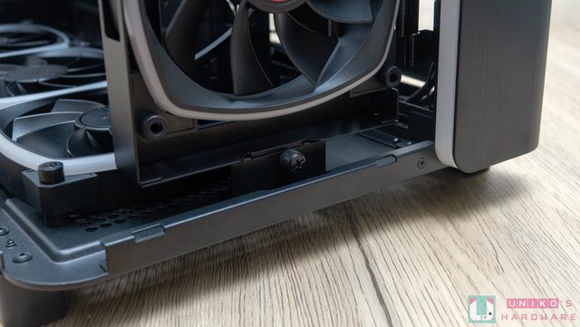 ECH 選擇附上免工具快拆的鐵網面板,以及側邊可轉向風扇支架的方式,變成可從前方進氣