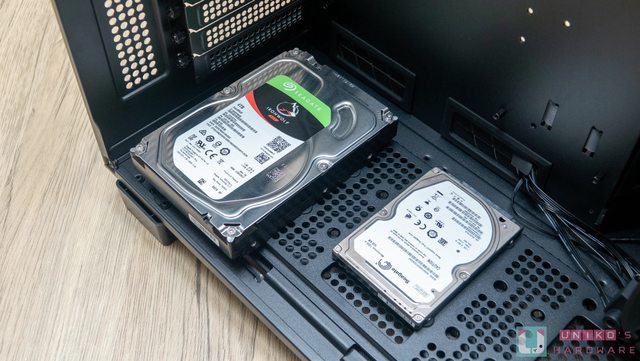 最多可安裝 2 個 3.5 吋硬碟或 3 個 2.5 吋硬碟,若不需要使用這麼多硬碟,拆除後也作