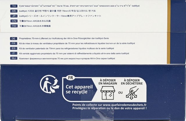 ▼外盒左/右側面有多國語言產品名稱,外盒下側面有回收資訊