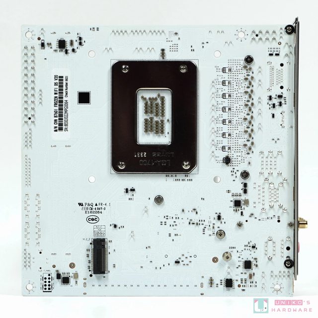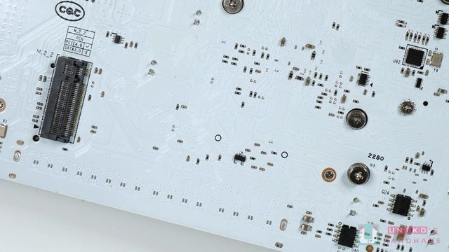 PCB 背面就是白色的世界,據說這片板子 DDR5 很好超,讓筆者提早體會到聖誕節的奇蹟。
