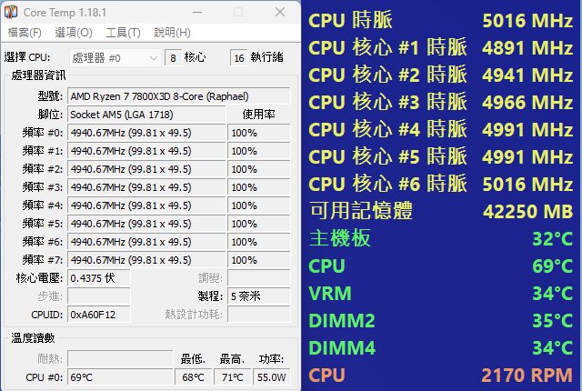 7800X3D 為例全速2170轉 70 度左右