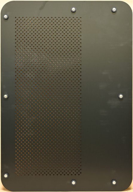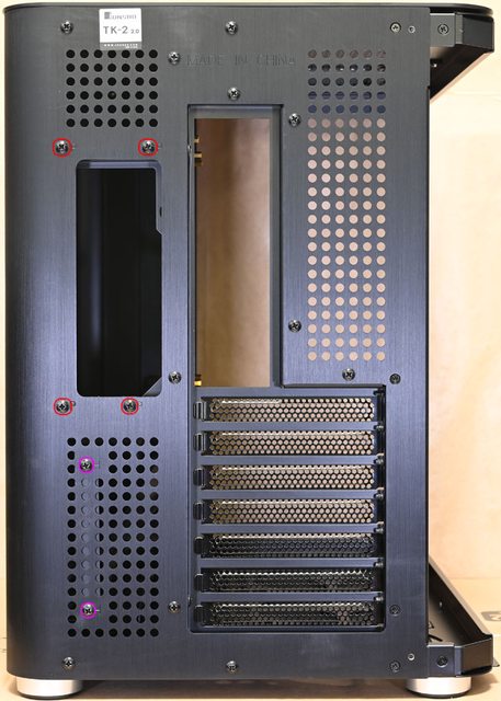 ▼機殼後方無風扇安裝位置,僅配置網狀通風口,下方7個標準擴充槽使用可重複拆裝的