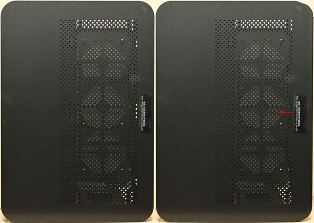 ▼右艙側板有圓孔網狀通風口,使用4個皿頭螺絲固定(紅色框)