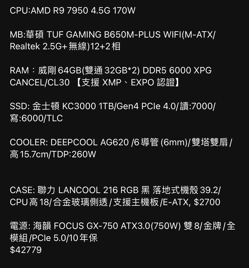 → leo3258: 你把m2改成 p5 + kc3000 2t 之類剩下價差 223.141.33.124 01/10 11:02