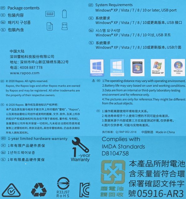 ▼包裝內容/系統需求/Windows圖示/1年保固/認證標誌/回收資訊近照