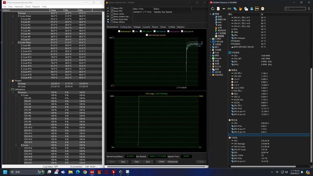 後來一路往下調,調到220瓦可以在雙風扇1500轉還壓在100度算是可接受的