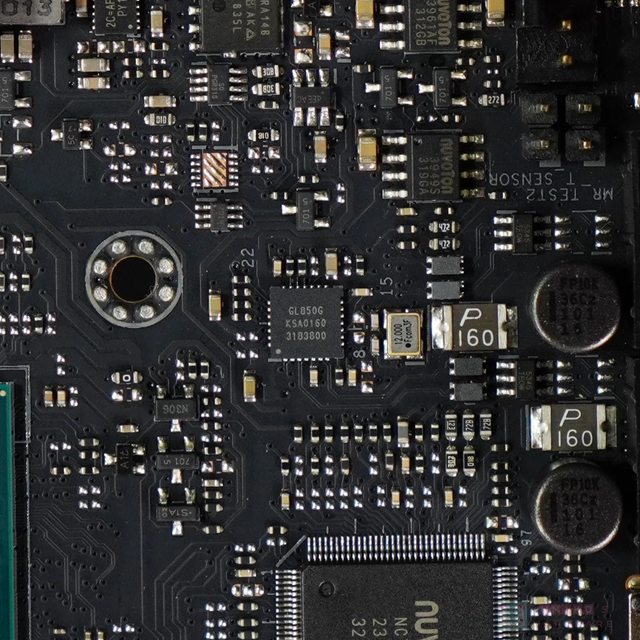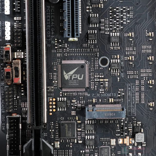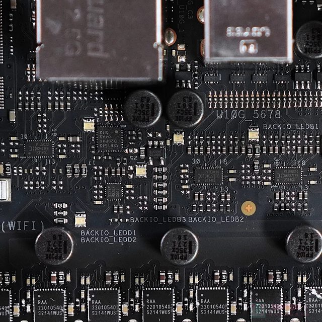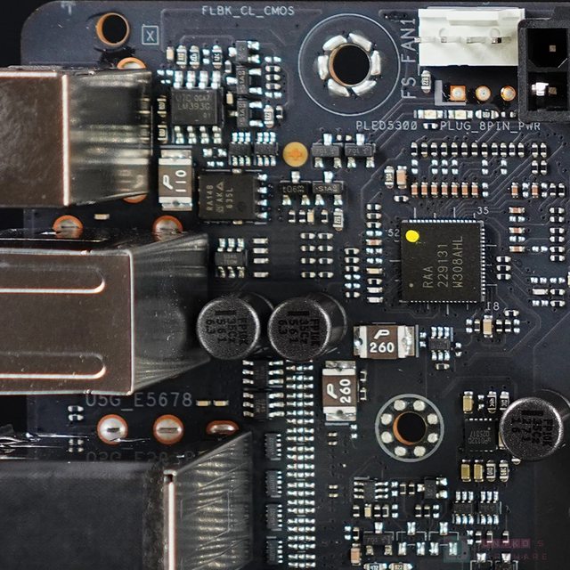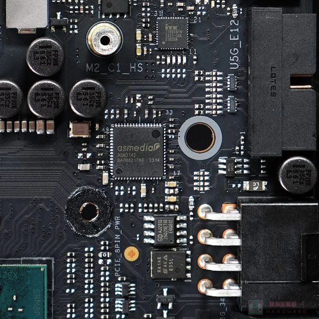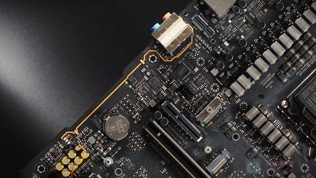 過去華碩偏愛這種將 PCB 內縮一點的設計,帶來視覺衝擊印象,但這次只有微縮 PCB 左下