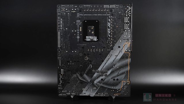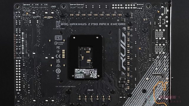 Z790 APEX ENCORE 背面倒不像 Z790 DARK HERO 那般有做背板設計,或許以極限超頻方向