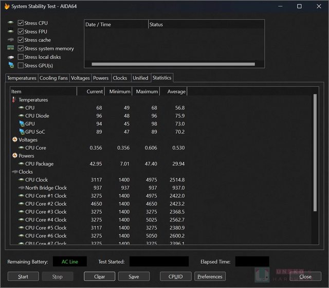 使用 3DMARK Steel Nomad light 壓力測試,CPU Pacckage 42 W 下,CPU die 96 度。CPU
