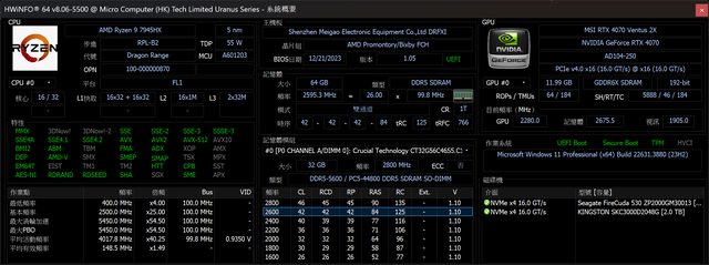 RAM :美光 SODIMM DDR5-5600 32GB*2 (實際運行在5200)