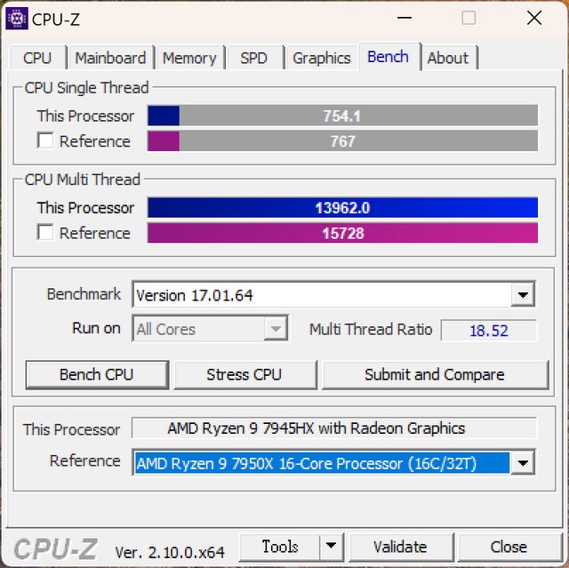 CPU :AMD Ryzen 9 7945HX 16C32T