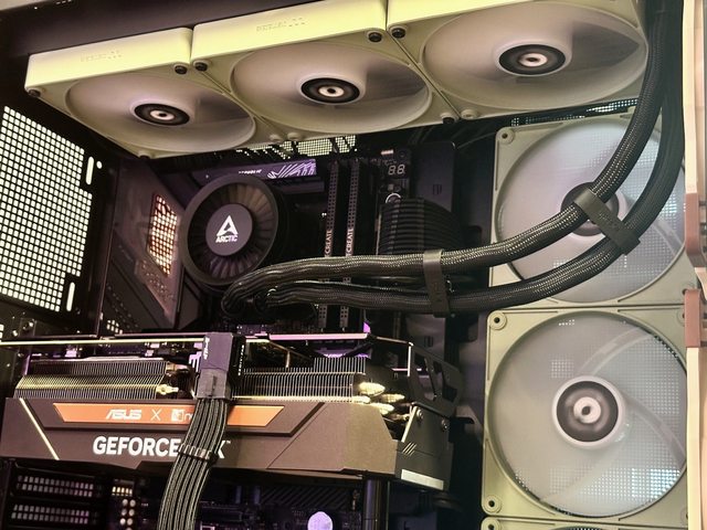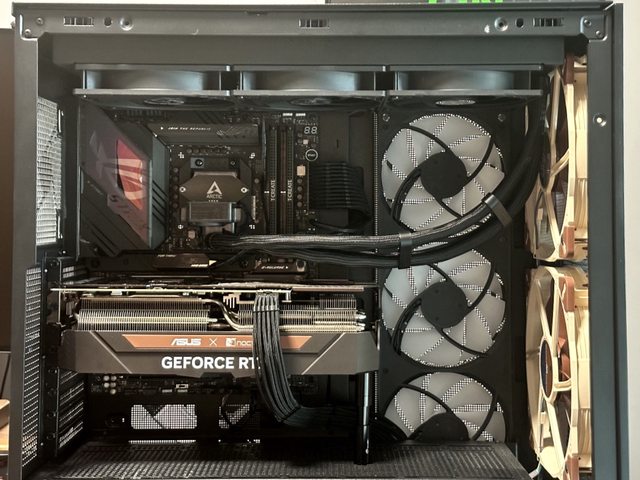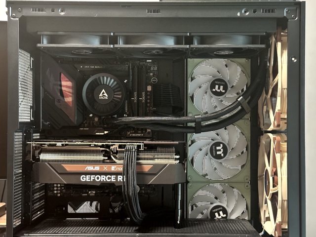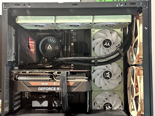 接著上機,側邊進風改用CT140 EX反轉風扇,420mm水冷風扇則使用CT140 EX正轉版本。