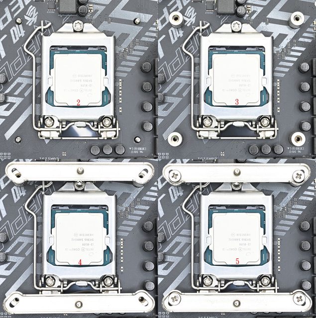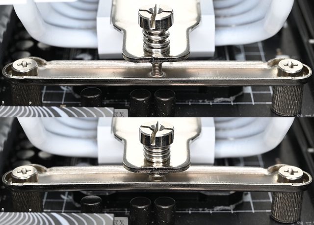 LGA1700托架固定柱有黑色墊片那面朝下鎖入固定螺牙(3),4個固定柱完全鎖入固定螺牙