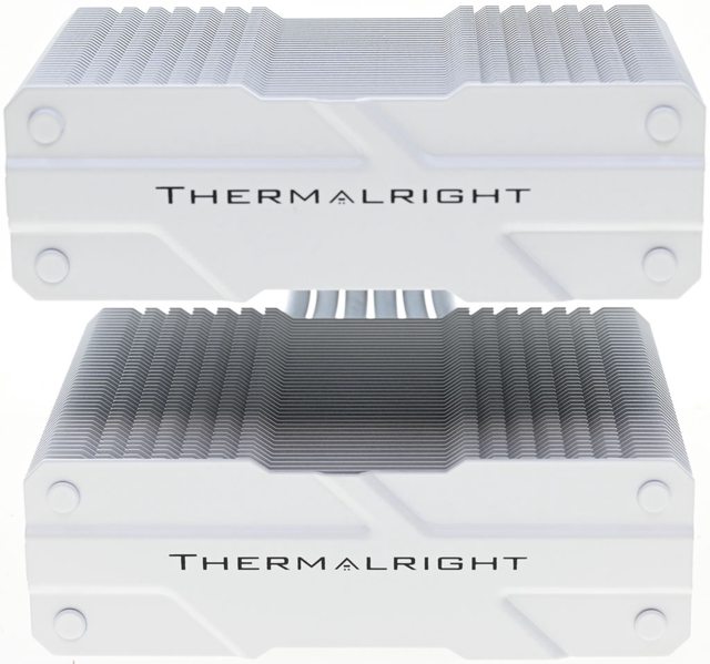 ▼PEERLESS ASSASSIN 120 MINI WHITE(左)前塔/後塔下方8片散熱鰭片縮小,使用皿頭螺