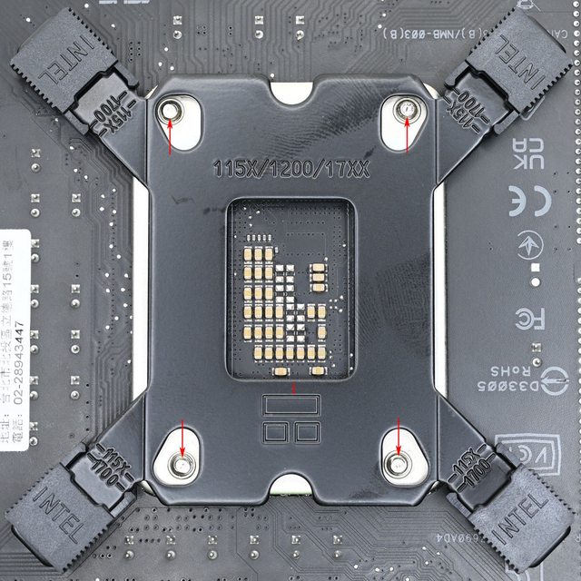 準處理器扣具底板3個螺絲鎖點位置(紅色箭頭)