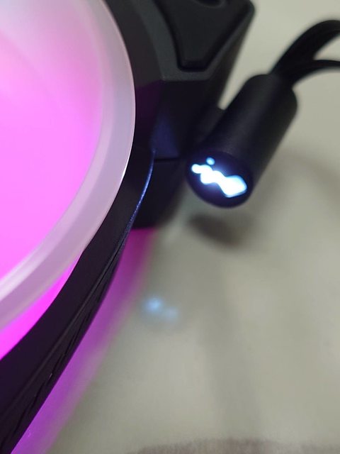 接上時可以看到迎廣的設計巧思。帶有LOGO燈的線材頭接上去燈光發亮風扇即正常運作