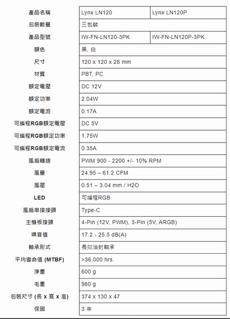 讓包裝看起來非常吸引人。風扇盒本體上清楚地標示了產品名稱「Lynx LN120/Lynx