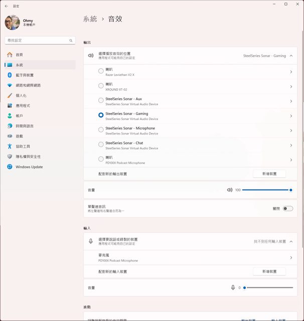 使用Sonar之後系統會多出幾個虛擬音效裝置供混音使用,但對於個人這種常常在耳機跟