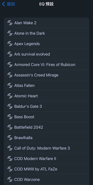 NOVA 5本次主打的特色之一是針對多款遊戲調教過的EQ設定,直接找到遊戲套用就可儲存