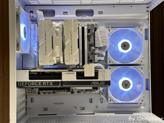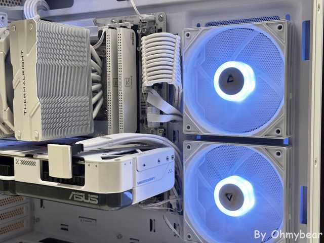 也使用風冷散熱器裝機嘗試不同的展現方式, 再搭配雙風扇短卡讓前方有足夠空間擺放
