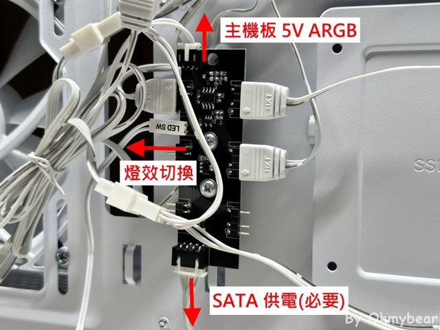 開按鈕切換。其中連接主機板 5V ARGB的線材僅有2條,只能傳輸燈效同步訊號,供電得