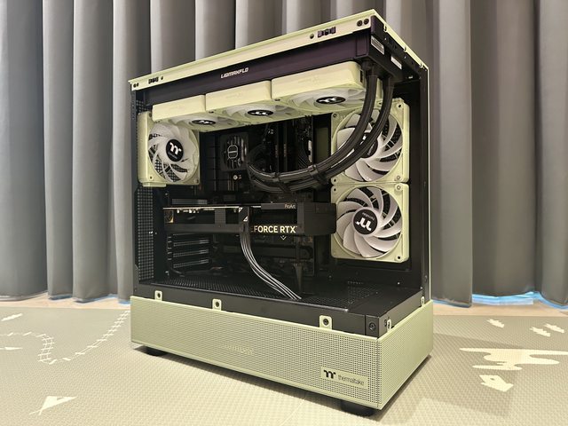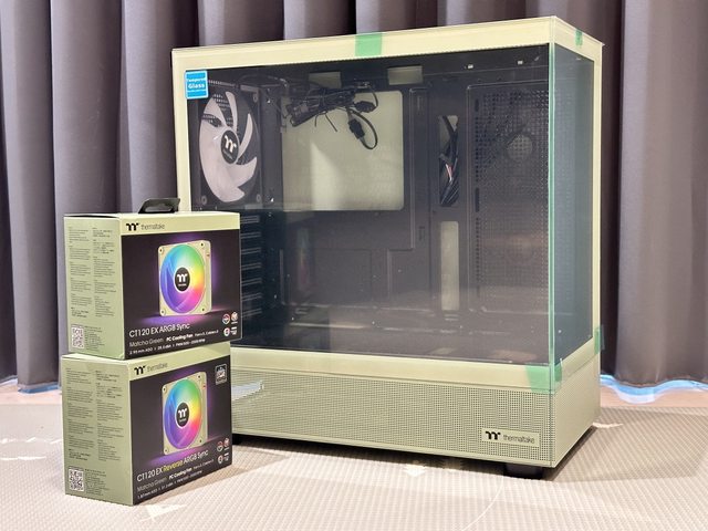 TT View270 TG 全景透測機殼 + CT120 EX 磁吸積木風扇 抹茶綠配色!