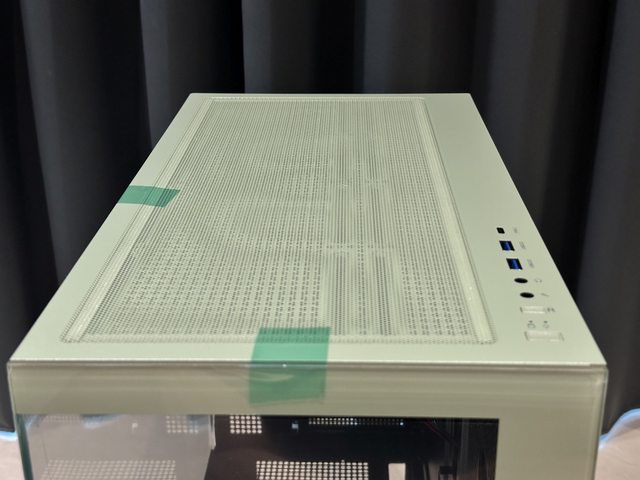 頂部採用PVC磁吸濾網,搭配機殼噴塗成抹茶綠色,IO則位於機殼上方右側,為常見的