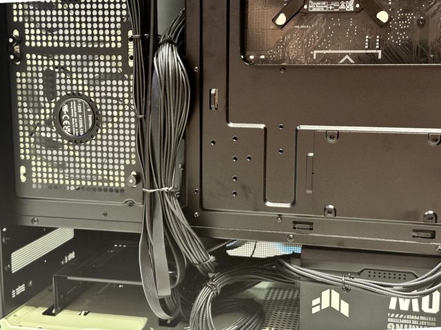 View 270後方空間算充裕,搭配TUF電源柔軟易彎折的壓紋線,整線沒有費太大的功夫。