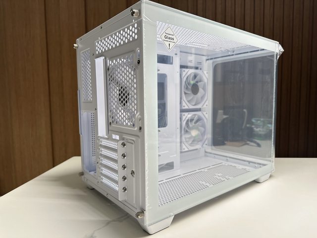 本篇開箱白色版S380,這外型還真像水族箱啊,側板採用兩片式曲面玻璃拼接,中間有接