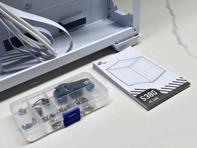 配件、螺絲裝於塑膠分類收納盒,不是僅用一次性塑膠袋包裝,值得給讚。配件則有裝機
