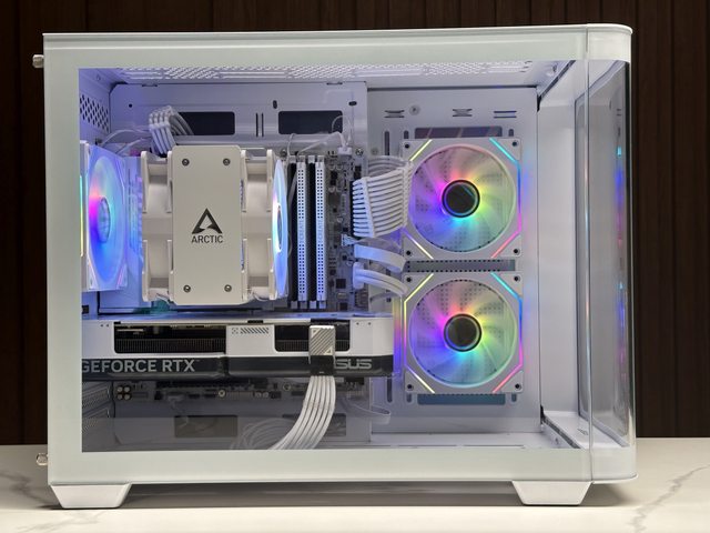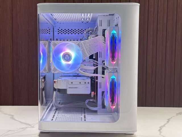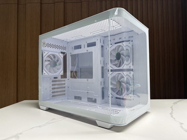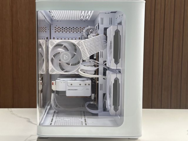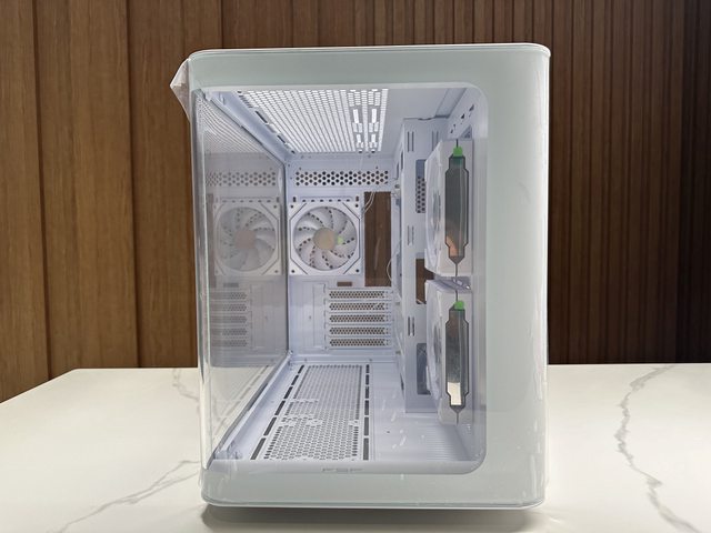 風扇數量剛好,燈效豐富,曲面玻璃側板及圓潤的機殼前緣展現了不同於其他全景機殼的