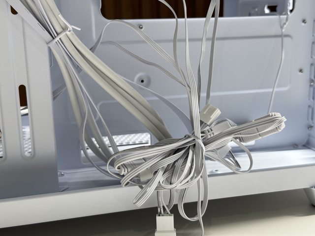 風扇線及機殼IO皆採用白色線材整體性更佳。風扇線材皆提供分接頭,但需花費一些時間