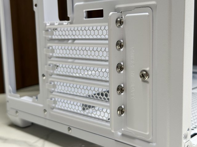 共設置5個PCI-E槽位,採用可重複使用通風檔板+螺絲固定,不過各槽位間有機殼結構擋