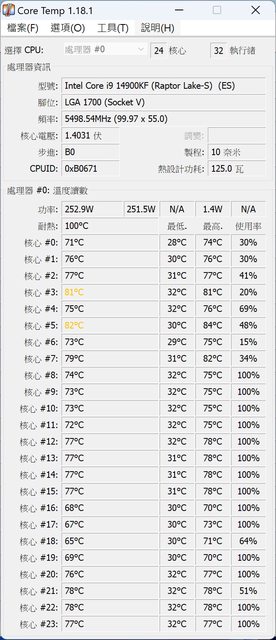 溫度參考 14900KF PL1 250W