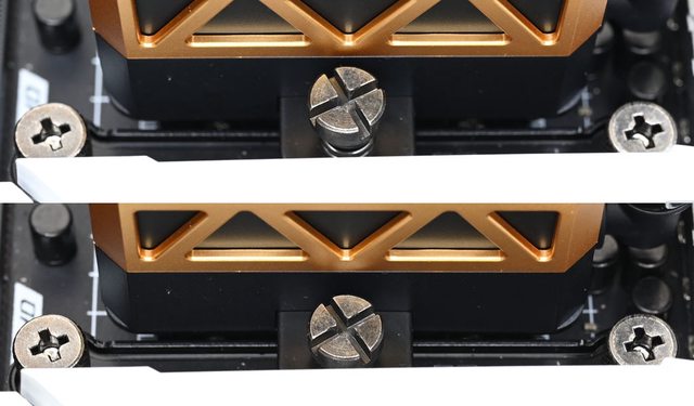 ▼AMD平台安裝示意圖,AMD托架只能讓水冷頭水管朝向上/下,需確認水冷頭水管接頭不