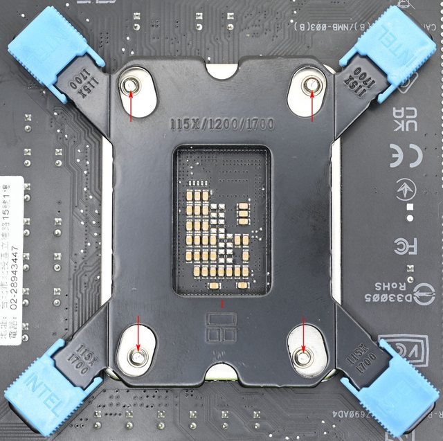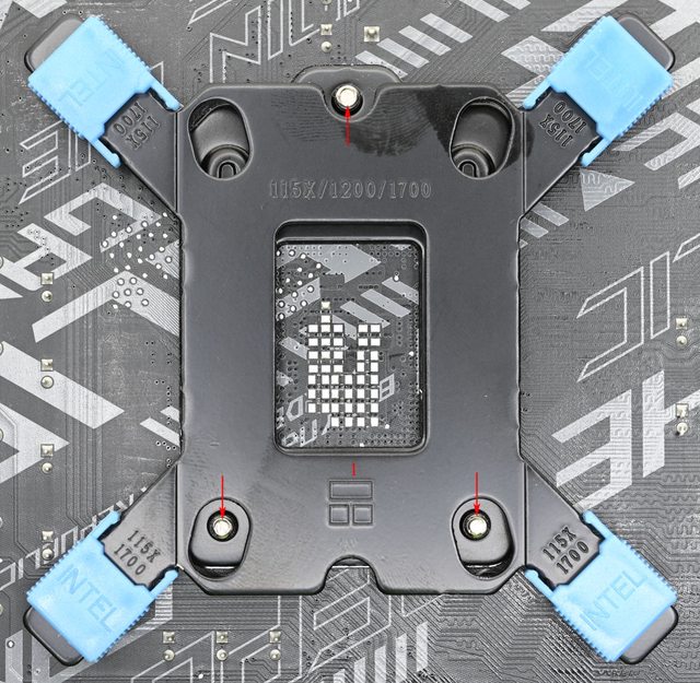 準處理器扣具底板3個螺絲鎖點位置(紅色箭頭)