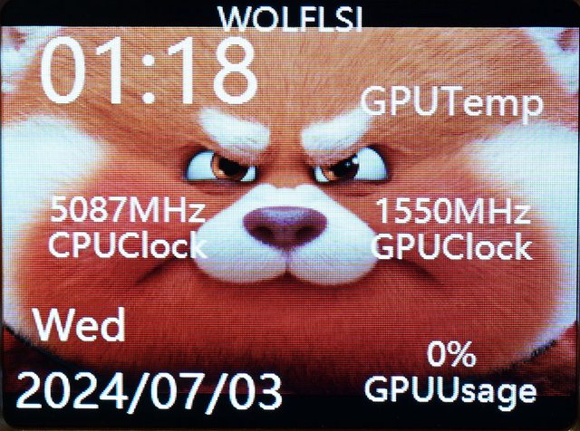 物體表面,連接USB後搭配專用軟體可顯示即時硬體監控資訊,還可顯示時間日期、更改