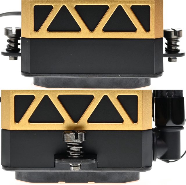 ▼水冷頭兩側壓板為固定式不可移除,上面有彈簧螺帽