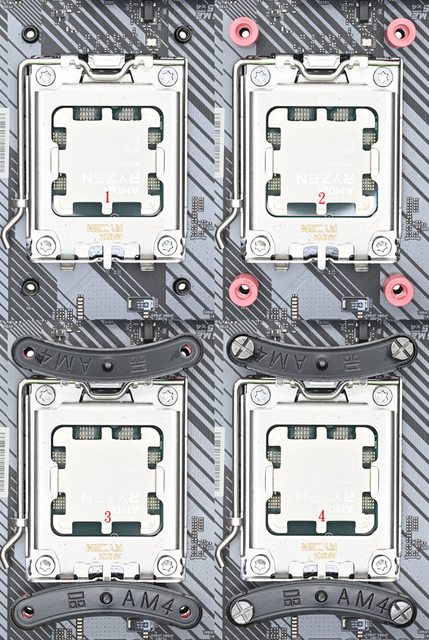 ▼安裝於AMD AM5/AM4平台時,需使用紅色AMD套管及AMD托架固定螺絲。將主機板原裝散