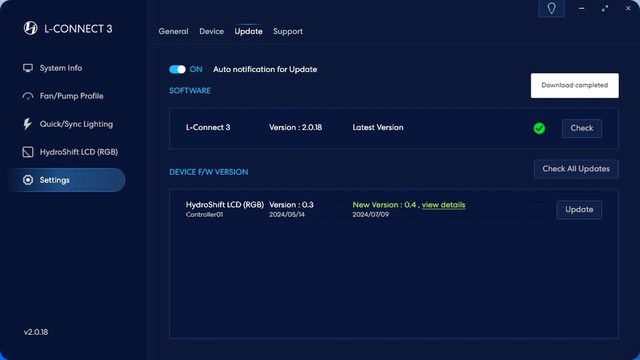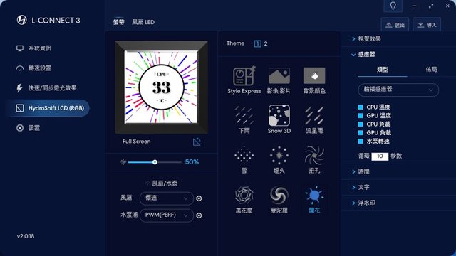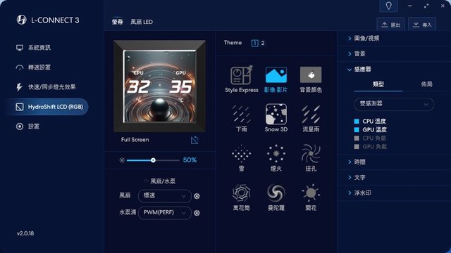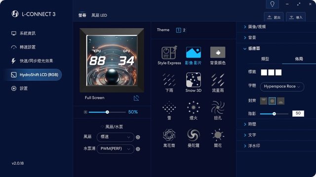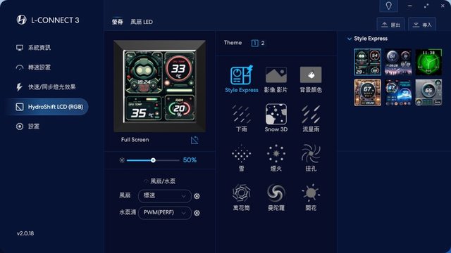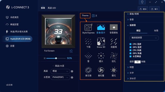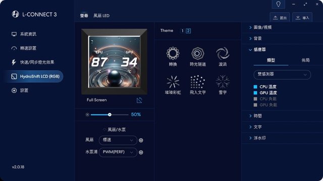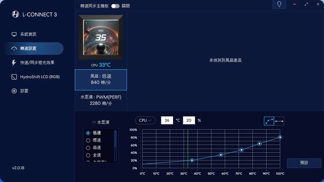 重頭戲!Hydroshift LCD頁面一樣能快速調整風扇轉速,此外能調整螢幕及風扇LED相關