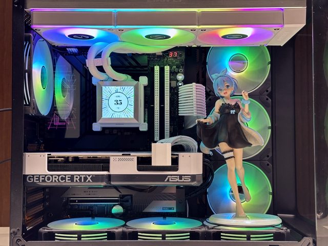 久違地(?)再把老婆擺上去,HydroShift LCD 360R沒有水冷管的阻礙,模型真的能隨便