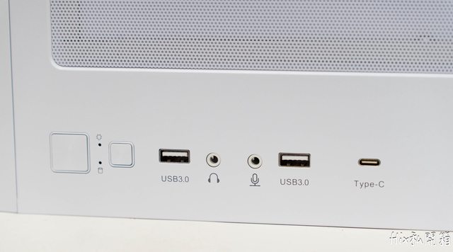 開關、RESET、USB3.0*2、麥克風口、3.5音源口以及TYPE-C*1